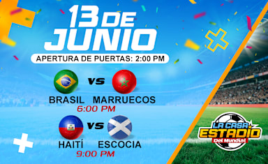 Celebra el inicio del torneo con la transmisión en vivo de la inauguración y después el esperado encuentro Brasil vs Marruecos y Haiti vs Escocia, en un entorno diseñado para vibrar cada minuto como si estuvieras en el estadio. Más que un partido… es el comienzo de un movimiento. Bienvenidos a La Casa Estadio del Mundial. Puertas: 4pm Cierra : 11pm
