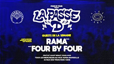🗓️ MERCREDI 29 AVRIL : RAMA FOUR BY FOUR présente : LA PASSE D w/ RAMA 🫱🏼‍🫲🏾 Pour clôturer ce mois d'avril en beauté, on se retrouve une dernière fois avant d'attaquer le mois de mai. LA PASSE D continue de retourner le Vice Versa ! LE CONCEPT 💡 La résidence hebdomadaire où Four by Four met en lumière la scène émergente et les talents cachés. Une semaine = un univers. LINE-UP DU SOIR 🔥 On termine le mois sur un set pointu et calibré pour la danse : 🎧 RAMA (Bailefunk / Batida / Global Dance) 🎤 Host : FOUR BY FOUR INFOS PRATIQUES 📍 🗓️ Date : Mercredi 29 Avril 🕙 Horaires : 22h00 - 04h00 📍 Lieu : Vice Versa - 40 rue des Trois Rois, 13006 Marseille 🎫 Tarif : GRATUIT AVANT MINUIT (Réservez votre place sur Shotgun) / Payant sur place après minuit.
