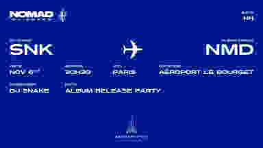 Release Party – DJ Snake “Nomad” DJ Snake présente la release party officielle de son nouvel album Nomad. Une soirée exclusive pour découvrir le projet, entouré de son univers et de son équipe.