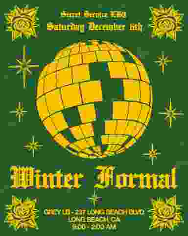 Get ready for an unforgettable night at the First Annual Secret Service Winter Formal, happening Saturday, December 7th, in downtown Long Beach! This is no ordinary winter soirée—it's a swaggy celebration of music, art, and Sagittarius season.
