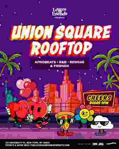 Union Square Rooftop Fridays join us at Cheers New York for Afrobeats, R&B & Reggae. Cheers is a three story event space. One ticket gets you into three parties! Good energy. Great people. Even better music. VIP Bottle Service Available, For Reservations & More Information: info@crustnation.com / Allan: 646-263-4593 Event Information: Doors: 9:00 PM - 3:00 AM Follow us on Instagram Lovers & Friends. 18 & over with proper ID (Physical ID required) DRESS CODE We encourage personal expression through fashion while maintaining an upscale atmosphere. To ensure entry, please follow these guidelines. DON'T wear clothing with offensive language, athletic shorts, slides, swim trunks or sweatpants. DON'T wear Timberlands, sandals & flip flops. DO dress stylishly. Jeans (no excessive rips), smart casual for men (collared shirts, stylish t-shirts, jeans), intentional baggy styles are allowed, dress shoes or clean sneakers, forward-facing hats (must compliment your look). Team jerseys permitted only during major sports events & independence day celebrations. Doorman's discretion. Presented by Lovers & Friends & Afrowaves.